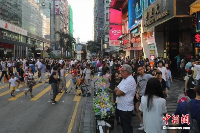 资料图:香港的旅游购物胜地尖沙咀游客爆满。中新社记者 谢光磊 摄