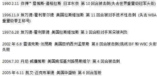 拳王泰森被击倒的场面 泰森都被谁打败过