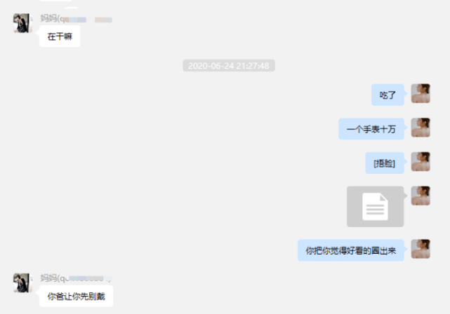 项思醒父母经验老到,劝女儿手表先不要戴,不要让男友张科峰发现,否则很可能会弄得“臭名远扬”。项思醒表现轻松“那不至于”。