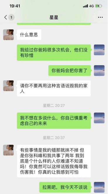 发现这些事情后,张科峰和项思醒对峙,女方却怒斥张科峰是精神分裂,喜欢PUA,污蔑诋毁自己的家人,严重伤害了自己,让自己感到可怕。